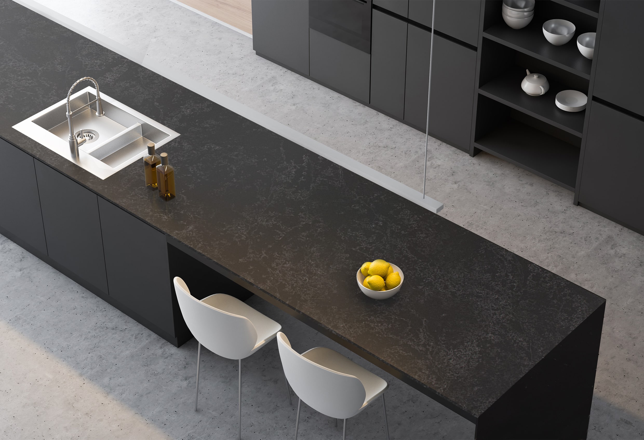 Avant Quartz combines stylish design with uncompromising practicality. This material boasts exceptional durability: it is resistant to heat, cold, scratches, stains, and UV rays.