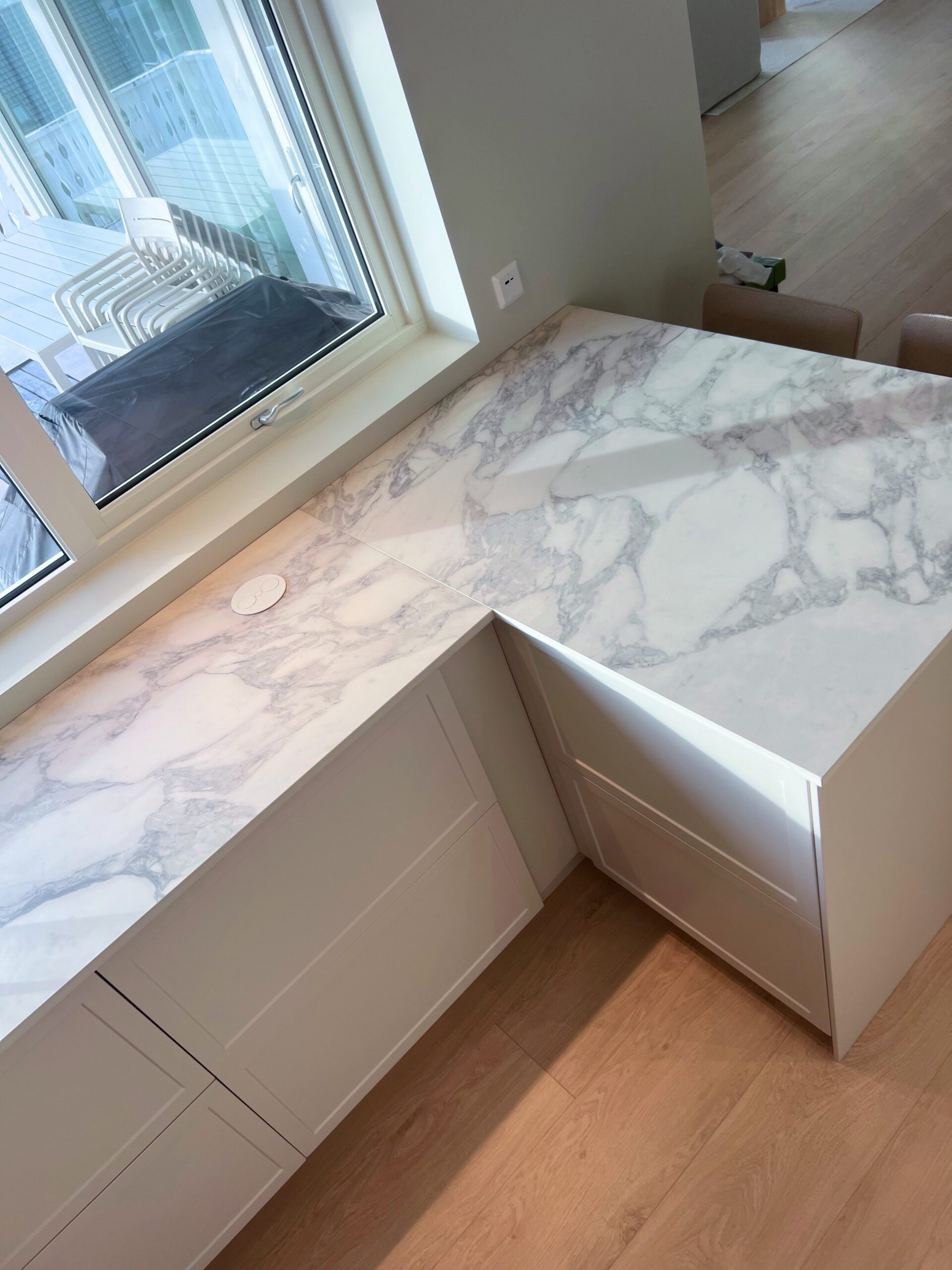 Infinity Calacatta Magnifico is an engineered surface material from Gruppo Concorde, Italy’s largest manufacturer of ceramic floor and wall coverings. This stone is adorned with grayish veins reminiscent of classic Calacatta marble, swirling dramatically on a pearly white background. The greyish lines form a stunning pattern, making it an impressive choice for kitchen countertops and public building lobbies alike.