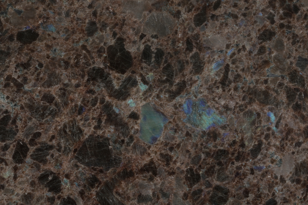 Labrador Antique is an expensive dark brown granite from Norway with red and blue crystals.